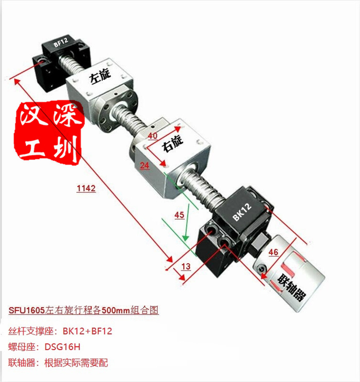 目前常用的左右旋滾珠絲桿是16、20、25、32、40直徑,導程以5居多,10mm部分型號也有,具體請聯系客服!