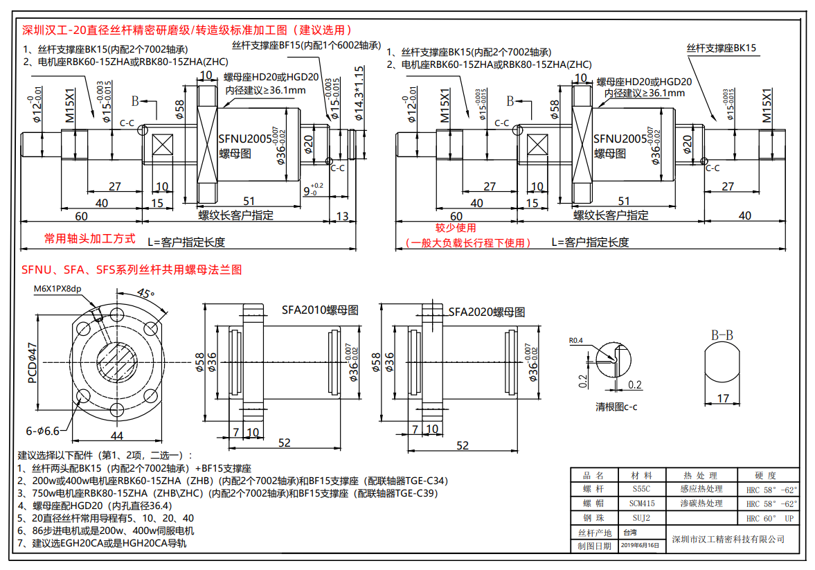 深圳漢工-20直徑絲桿精密研磨級/轉造級標準加工圖