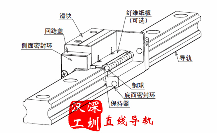 直線導軌系為一種滾動導引,由鋼珠在滑塊與導軌之間作無限滾動循環,負載平臺能沿著導軌輕易地以高精度作線性運動。