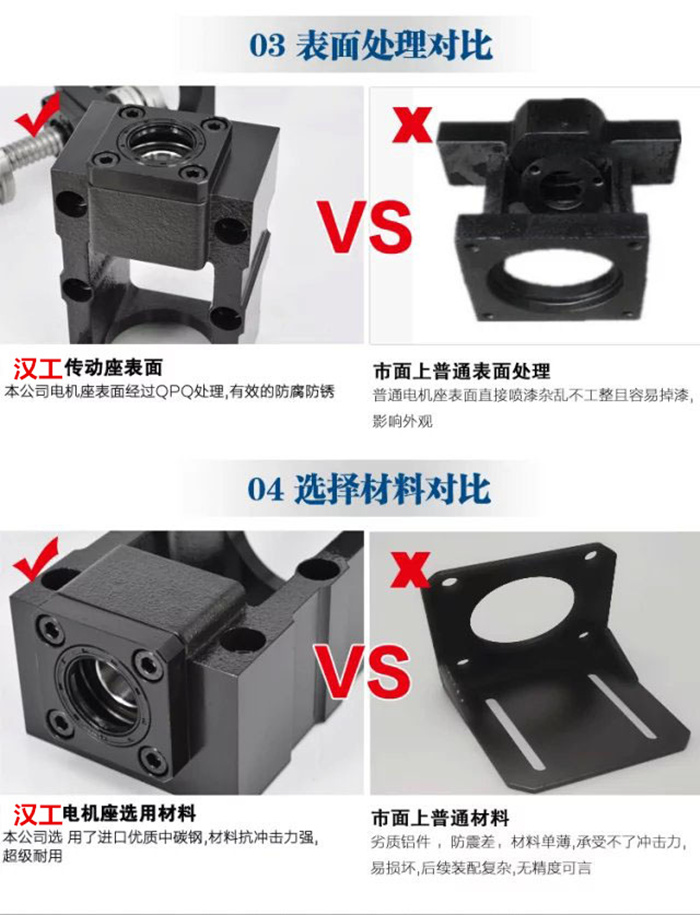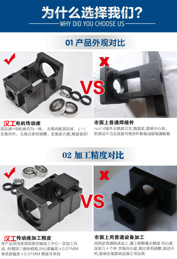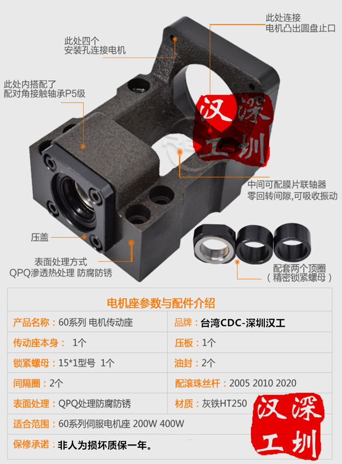 電機座把傳統(tǒng)的連接方式改為一體化,精度更高,安裝更易,更加美觀。傳統(tǒng)連接方式一般是支撐座,電機支架,聯(lián)軸器組成,須要花大量時間調(diào)試中心高,偏心量,調(diào)試不當(dāng)會導(dǎo)致絲桿斷軸或聯(lián)軸器斷裂。